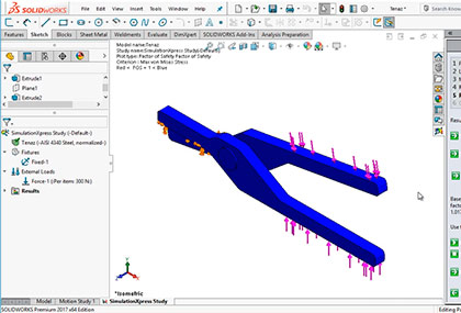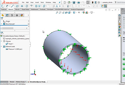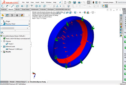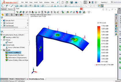 - Ser um tutorial completo de SimulationXpress, fácil de usar, com aplicações práticas e estudos com carregamentos de força e pressão, mostrando os principais recursos desta ferramenta de simulação