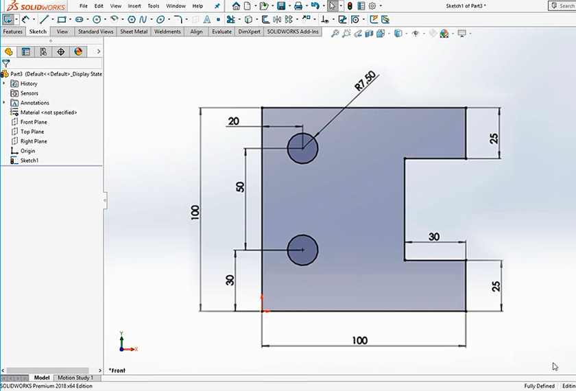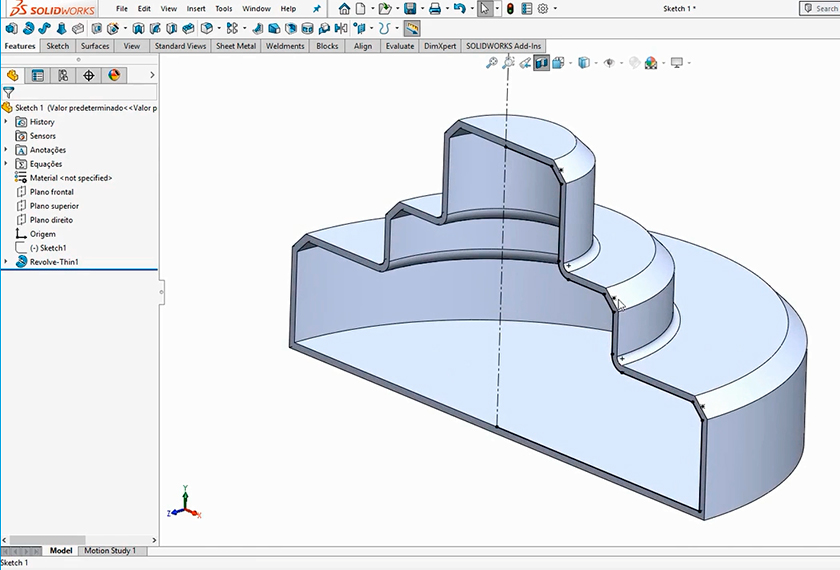 - Ensinar a usar recursos do SolidWorks para modelar peças, desenhando os esboços, aplicando as restrições e adicionando o material sólido
