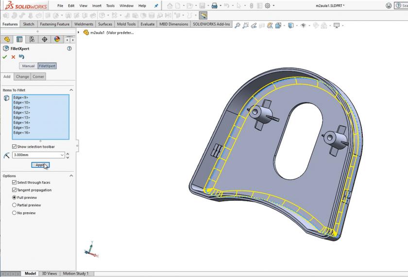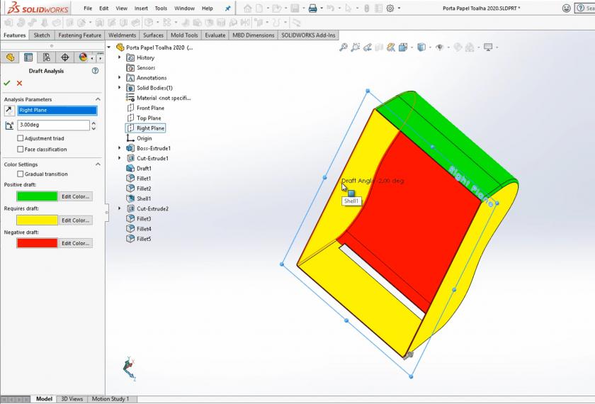 Este curso ensina os recursos do SolidWorks para facilitar a criação de vários detalhes em 3D para peças plásticas. Com aulas dinâmicas, exemplos práticos e exercícios para você treinar, tenha um aprendizado completo dos comandos Snap Hook, Snap Hook Groove, Mounting Boss, Vent, Lip/Groove, Rib, Draft e Draft Analysis. Crie peças sólidas com ângulo de extração adequado, ganchos de encaixe, ressaltos de suporte, ranhuras, saliências, aberturas para ventilação, nervuras e muito mais. Aprenda a criar peças plásticas facilmente no SolidWorks e faça parte de um mercado em ampla expansão.