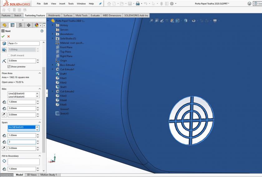 - Desenvolver peças plásticas com encaixes, nervuras, ressaltos, ranhuras, saliências e detalhes para ventilação, aplicando comandos específicos do SolidWorks