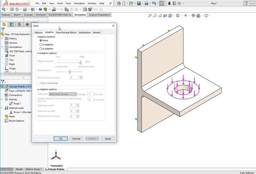 - Ensinar a usar métodos de solução adaptativos, trabalhar com malha mista, usar conectores avançados, mostrar opções avançadas para a malha e os Solvers